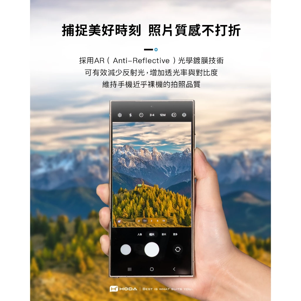 hoda藍寶石鏡頭保護貼採用 Anti-Reflection光學鍍膜技術,它通過減少光的反射而增加透光率與對比度,維持手機照相品質不失真。