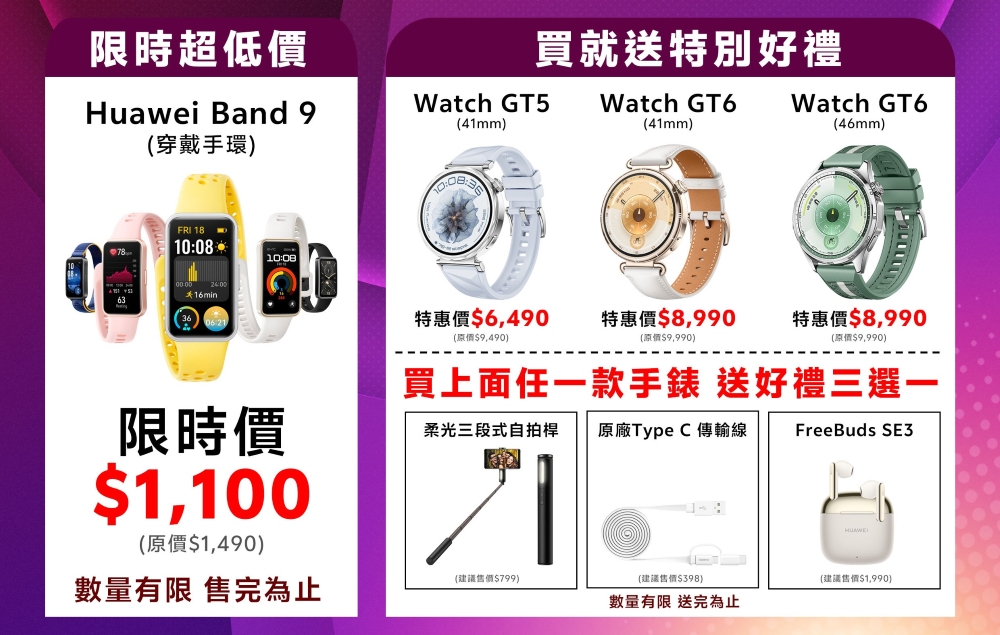 以上就是今天優編為你帶來的 HUAWEI 超狂慶典 活動全攻略。我們的門市人員會根據你的生活習慣與預算,現場幫你試算最划算的旗艦組合或單機購機方案!別忘了,好禮三選一 與 Band 9 限時特惠 都是數量有限、送完為止。想要入手最新 GT 6 Pro 或質感 GT 5 系列 的朋友,千萬別錯過這次門市限定的超狂檔期!👀✨