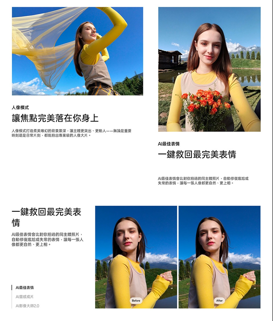 | 特殊功能 | 水下相機、AI 最佳表情、USB-OTG 反向充電 | AI 最佳表情、USB-OTG 反向充電 |
