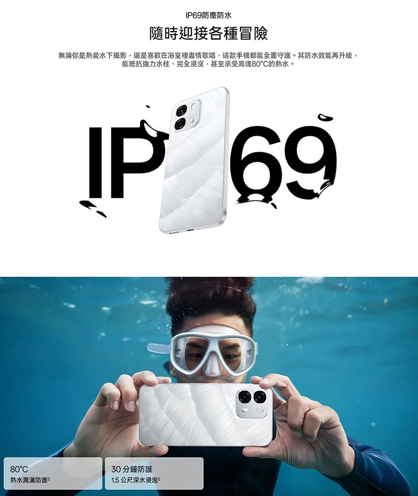 這規格通常只在很貴的旗艦機才看得到,IP69 在這個價位,並不常見。沒想到這次 OPPO 直接下放。午後雷陣雨有時候大得像用倒的,如果你剛好在戶外跑業務或騎車,手機淋濕了真的不用心驚膽顫,回家擦乾就好。在下雨天、戶外使用、手滑的那一刻,你會很慶幸它有做到這個等級。