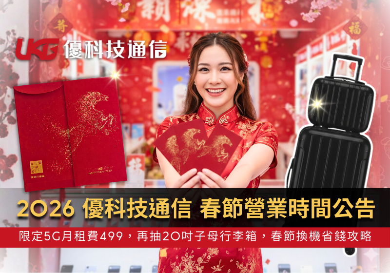 2026 春節營業時間公告:來優科技換新機抽 20 吋子母行李箱!