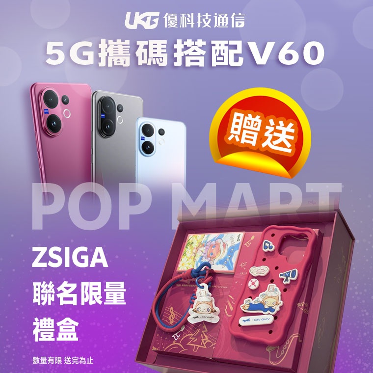 現在來優科技通信,辦理指定 5G 攜碼搭配 V60,限量聯名禮盒不用抽,直接送給你![ 完整活動詳情 ]