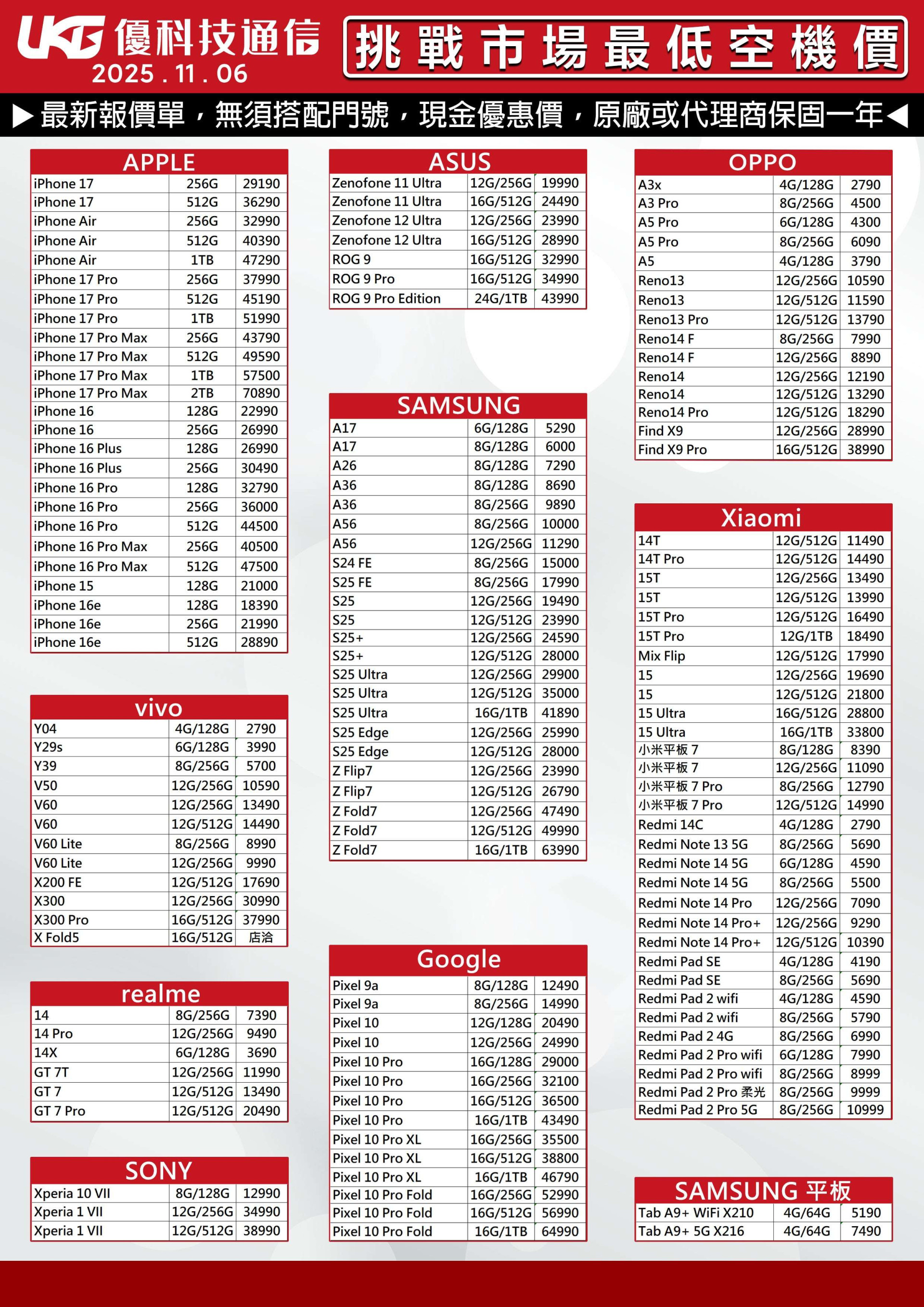 最新手機空機報價出爐!立即查看優惠|優科技通信 官網最透明,空機最便宜!